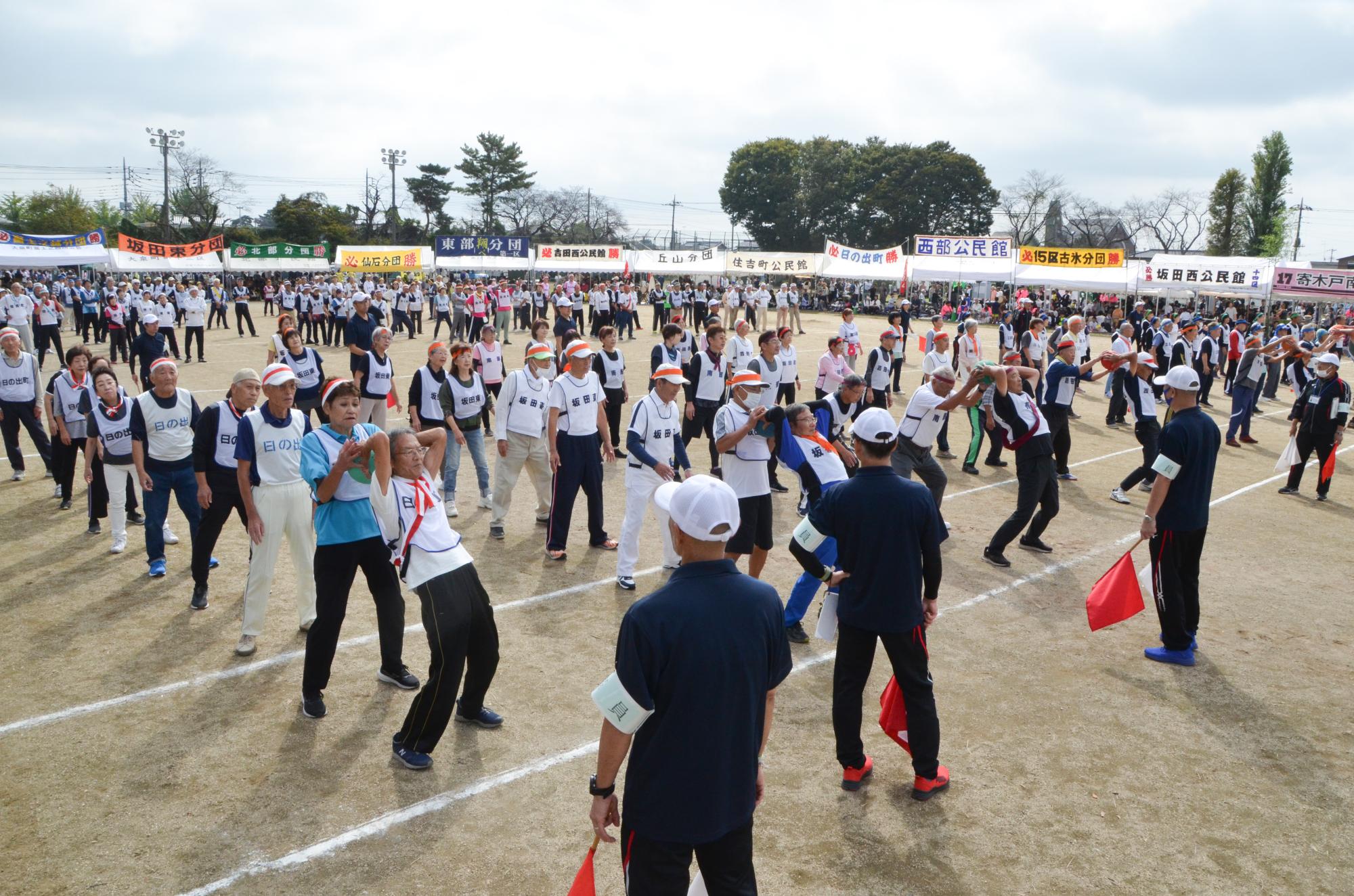 南中学校校庭を会場に「第69回大泉町民体育祭」が開催されました。秋晴れの空の下、会場にはたくさんの人が集まり、玉入れやボール送り競走などのさまざまな競技に元気に取り組んでいました。また、今回初めて行われた「なりきり分団仮装リレー」では、個性あふれる仮装に身を包んだ14分団の参加者たちによるパフォーマンスに、会場は笑顔と声援に包まれていました。すべての競技を終え、南部分団が54点を獲得して優勝し、見事6連覇を達成しました。閉会式では村山町長も仮装をして登場し、なりきり分団仮装リレー参加者への表彰や、入賞した分団への表彰が行われました。
