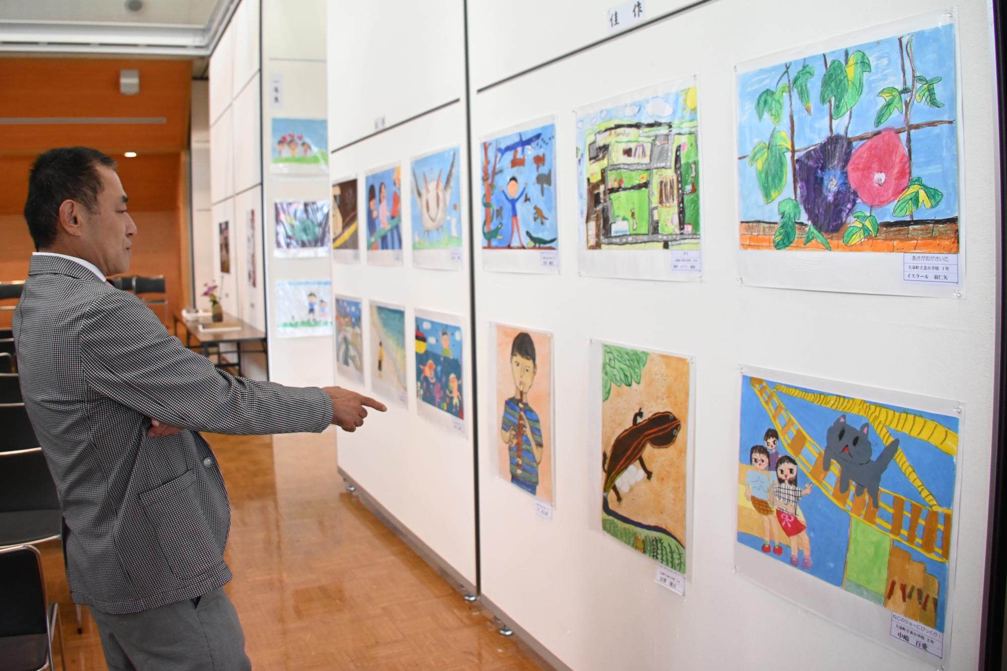 洋泉興業大泉町文化むら展示ホールで「第30回MOA美術館大泉児童作品展」が開催されました。今年は、町内の4つの小学校から324点の作品の応募があり、充実した夏休みの思い出を表現した作品などが展示されました。会場には多くの人が来場し、作品をじっくりと鑑賞していました。また、10月13日には村山町長も訪れ、作品を鑑賞した後、表彰式で入賞者に直接、表彰状を授与する姿も見られました。