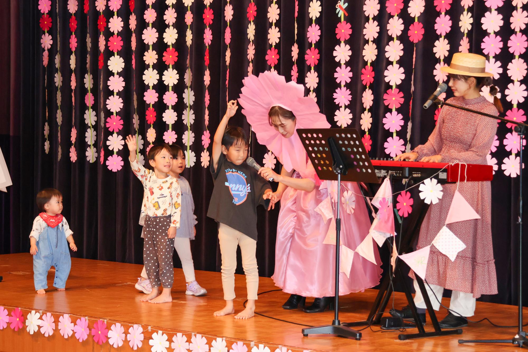 洋泉興業大泉町文化むら小ホールで「第2回大泉町子育て支援研修会 0歳からのこもれび親子コンサート」が開催されました。このコンサートは、シンガーソングライター・家族相談士の玉城ちはるさん、保育士・シンガーソングライターのいわしピクニックさんを講師にお迎えし、妊産婦や子育て中の親子などを対象に、安心して子育てができる環境づくりの一環として開催されたものです。いわしピクニックさんの伴奏に合わせて玉城さんが歌声を披露する中、子どもたちは玉城さんの呼びかけにより、自由に動き回ったり、ハイハイをしたり、親子で楽しむ姿が見られました。また、会場には、保育士、助産師、保健師などによる相談ブースやハローワーク館林による就労相談ブース、地域活動支援センターによる手作りお菓子の販売も行われ、多くの人がブースを訪れていました。この研修会は第3回を令和8年2月21日(土曜日)に開催する予定です。詳細は町ホームページなどで令和8年1月頃にご案内しますので、ぜひ皆さんお申し込みください。