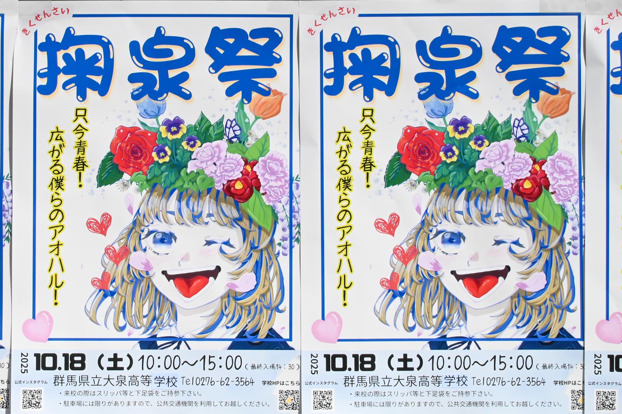 県立大泉高等学校で3年に1度開催される文化祭「掬泉祭」が開催されました。野外ステージでは、生徒によるダンスや歌などが披露されると観客から歓声や拍手が起こり、屋内ではメイド喫茶や普通科の「総合的な探究の時間」の発表展示、園芸デザイン研究部による生花のお花釣りなど趣向を凝らした催し物が多数用意され、訪れた多くの人の楽しむ姿が見られました。生徒の一人に話を聞くと、「だいぶ前から企画して、この一週間は本格的に準備をしていました。準備は大変でしたが、これほどおおぜいの人が来てくれると思わなかったので、がんばった甲斐があってうれしかったです」と笑顔を見せていました。また、村山町長も会場を訪れました。