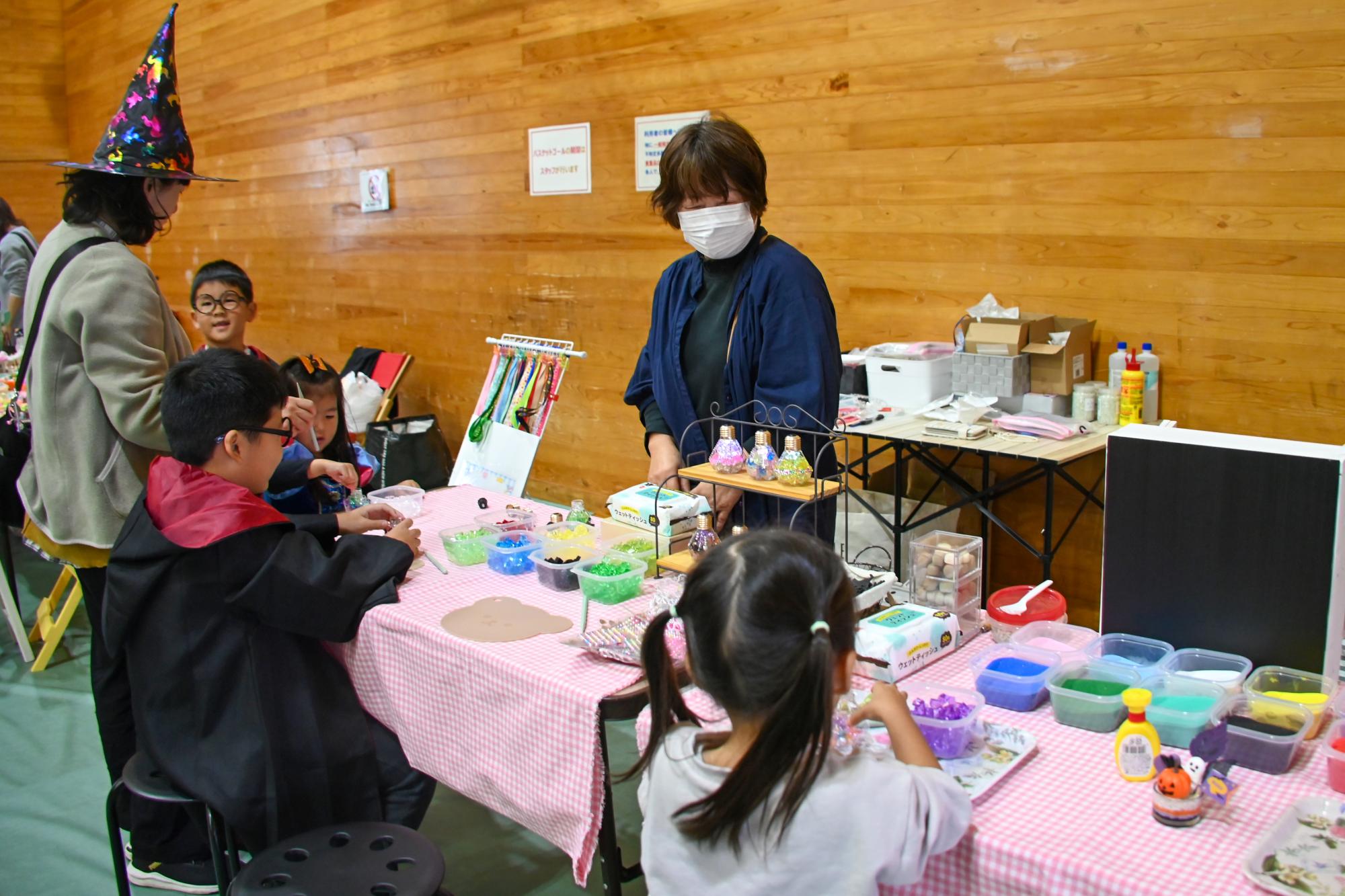 東朋産業いずみの杜で「杜のハッピーハローハロウィン」が開催されました。ハロウィンの装飾が施された会場では、ジオラマ電車の展示、ダンボール迷路、子ども縁日、ワークショップ、キッチンカー、スタンプラリー、新鮮野菜の販売などが行われ、多くの人でにぎわっていました。会場には村山町長も訪れ、ハロウィンの仮装をして楽しそうに過ごす子どもたちの様子を見守りながら、会場の雰囲気に触れていました。