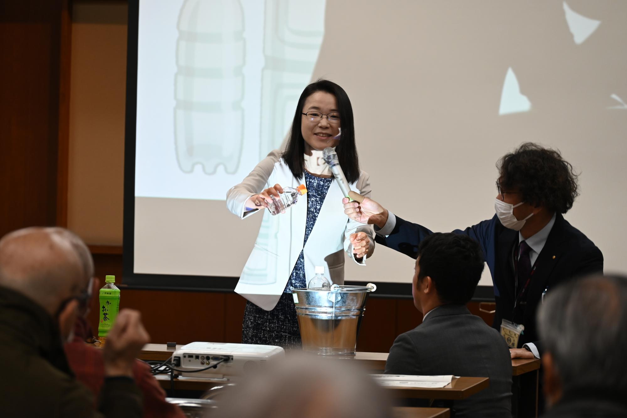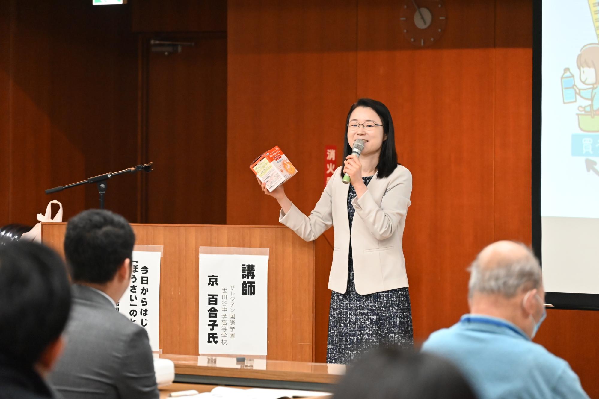 サレジアン国際学園世田谷中学高等学校の社会科教諭である京百合子さん(京は異体字)を講師に迎え、役場職員、自主防災組織役員、町内在住防災士を対象とした防災講話を開催しました。講師の京さんは、自分の楽しみや好きな食べ物を取り入れた備蓄の方法を紹介したほか、ゲームやクイズを交えて防災知識を解説するなど、ネガティブなイメージを持つ防災を前向きに楽しんで取り組む姿勢を講義されました。また、仙台市の初代地震防災アドバイザーである父を持つ京さんは、仙台市における事例を踏まえた継続的な防災啓発の重要性についても紹介し、参加者は熱心に耳を傾けていました。