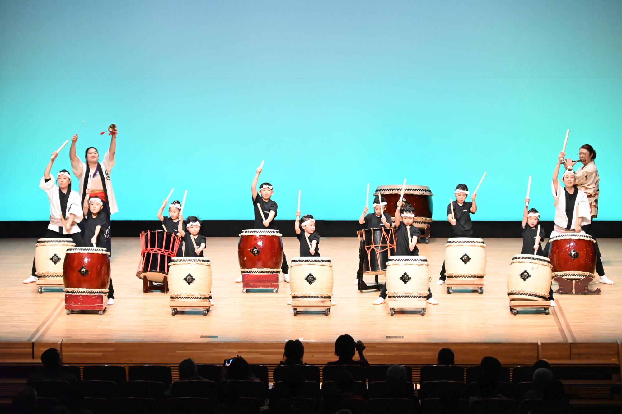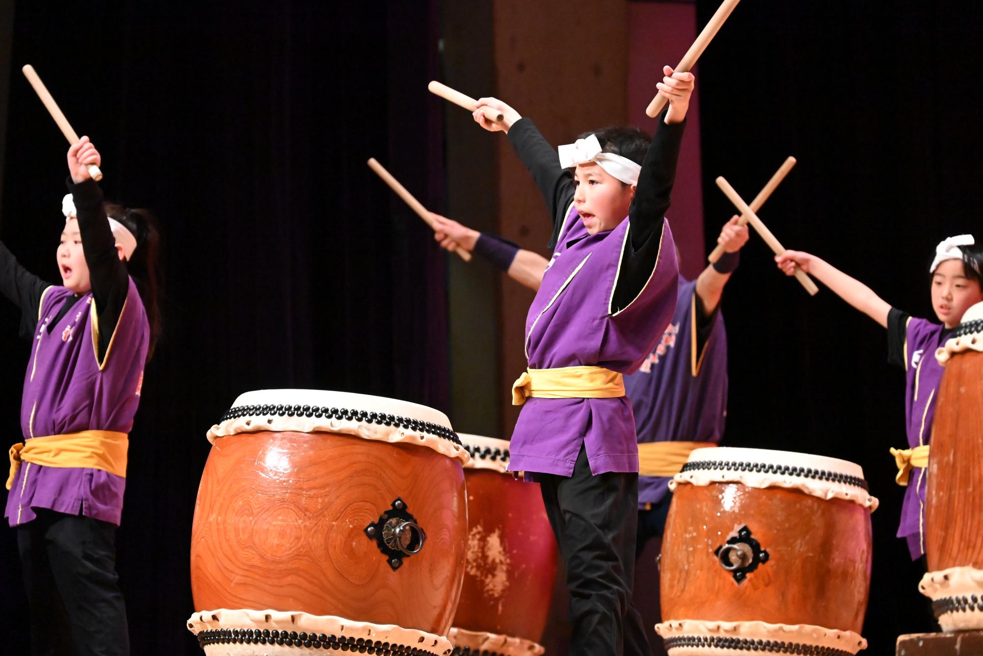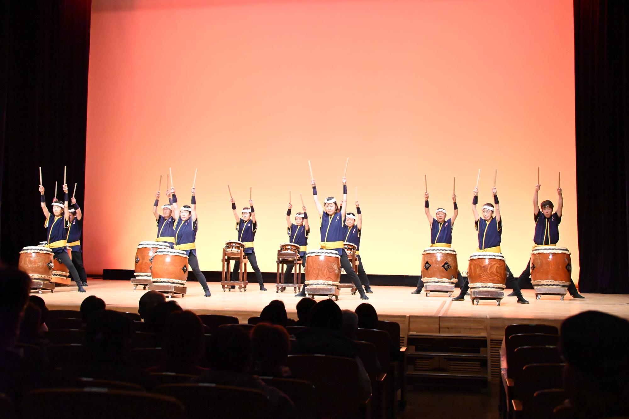 洋泉興業大泉町文化むら大ホールで、「和太鼓の祭典」と題して第11回伝統芸能まつりが開催され、「群馬県立桐生清桜高等学校和太鼓部(桐生市)」、「新田太鼓保存会(太田市)」、「和太鼓白楽(桐生市)」の3団体が和太鼓の演奏を披露しました。会場には迫力ある演奏を聴こうと多くの人が訪れ、各演目が終わるたびに盛大な拍手が送られました。また、村山町長も会場を訪れ、各団体の個性あふれる演奏を鑑賞しました。演奏を終えた桐生清桜高等学校和太鼓部の生徒は、「練習の成果を発揮し、細かい動きをそろえることができたので良かったです」と振り返り、演奏前は緊張の面持ちだった新田太鼓保存会と和太鼓白楽の子どもたちは、終演後、達成感に満ちた表情を浮かべていました。