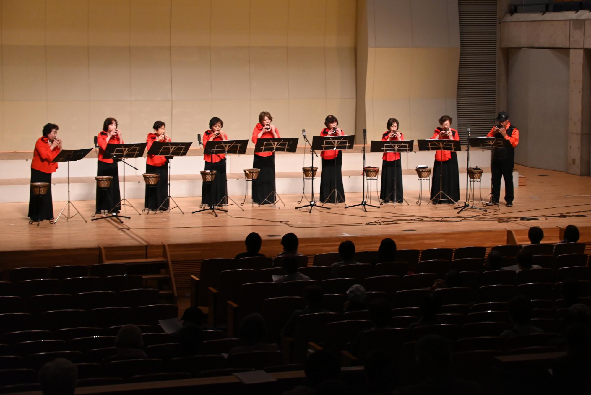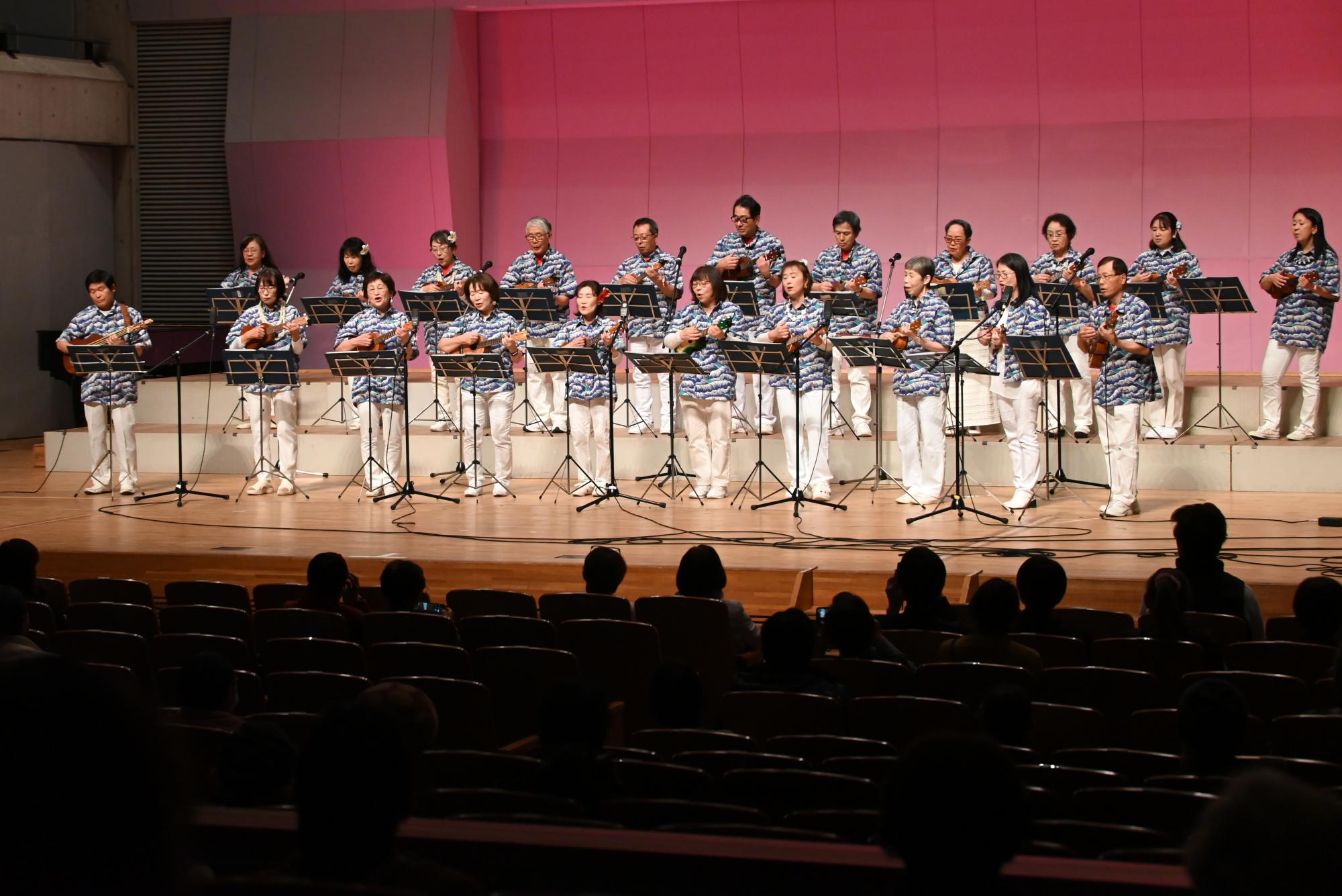 洋泉興業大泉町文化むらで「第42回公利連サークルフェスティバル」が開催され、町公民館を拠点に活動する公利連加盟サークルの皆さんが、きりえ・デッサン・書道・染めものの作品展示や、ウクレレ・土笛・合唱などのコンサートを通して、日頃の活動の成果を発表しました。コンサートでは、演目が終わるたびに、来場者から大きな拍手が送られていました。