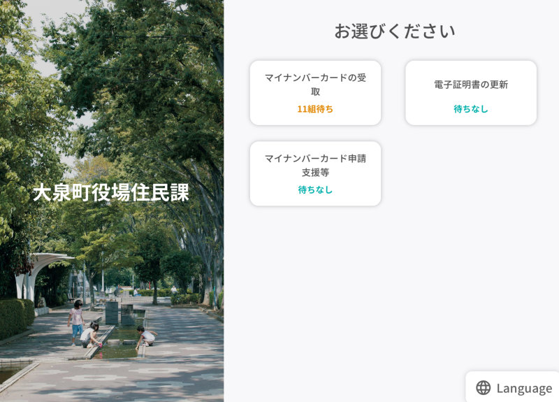 マイナンバーカード関連手続きについて、住民課窓口に来なくても、スマートフォンなどから事前に順番待ちの予約ができるサービスを開始します。